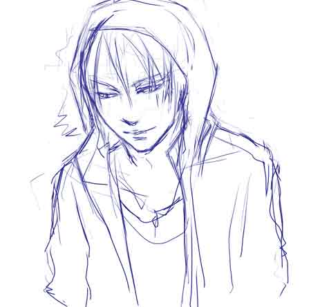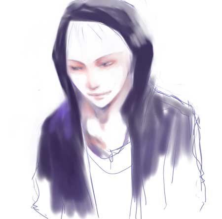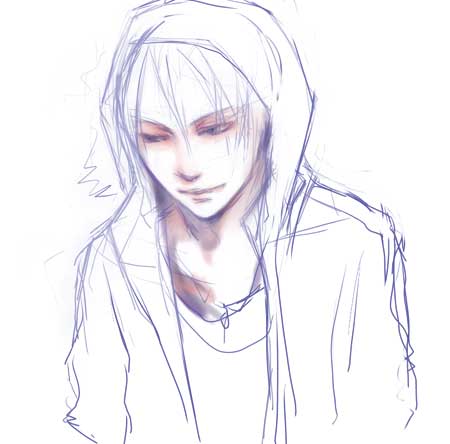 下書きを複製し、肌レイヤーと結合。下書きの青を残す感じで塗り込みます。